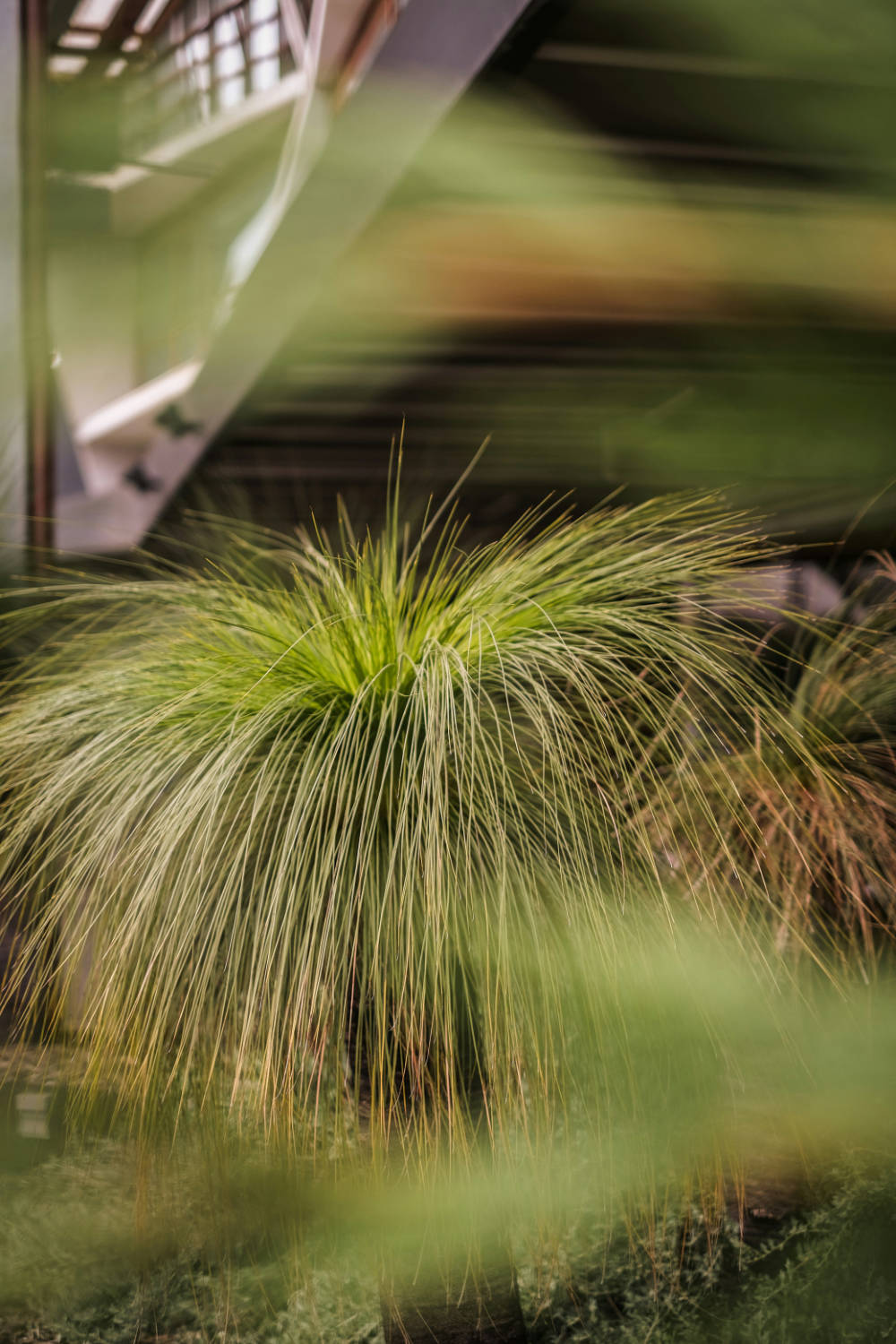 Planting is one of the most powerful ways to create focus. Sculptural plants like grass trees (Xanthorrhoea) or tree aloes (Aloe barberae) immediately command attention, especially when given space to stand apart or placed on a raised mound. Upright trees such as ornamental pears or magnolias can also serve as vertical accents that frame views and lead the eye.